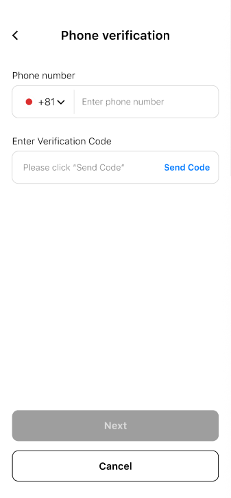 4. You will also need to verify your phone number. Fill in your phone number, a code will be sent to your phone. Fill in that code and click Next: