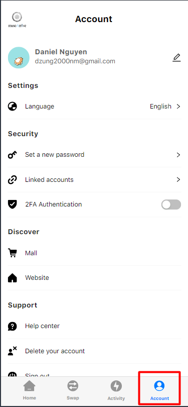 1. Access MuseArrIve app -> Click on your profile icon: