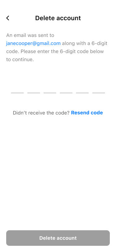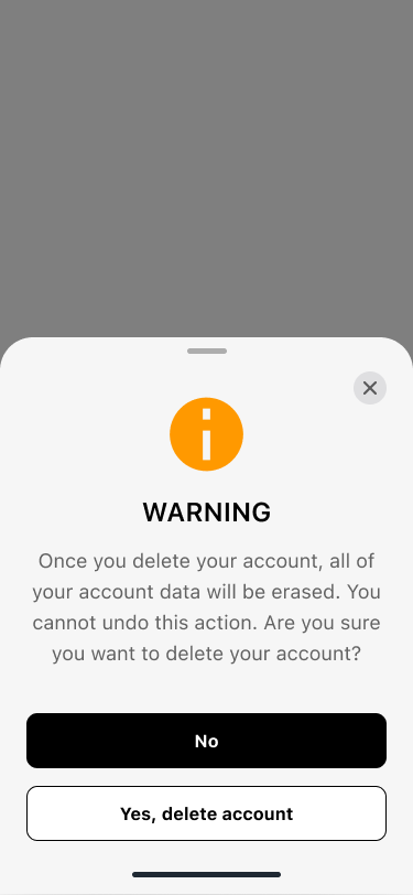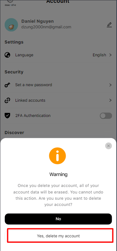 3. Click Yes, delete account to confirm: