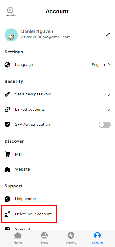 3. Choose Delete your account