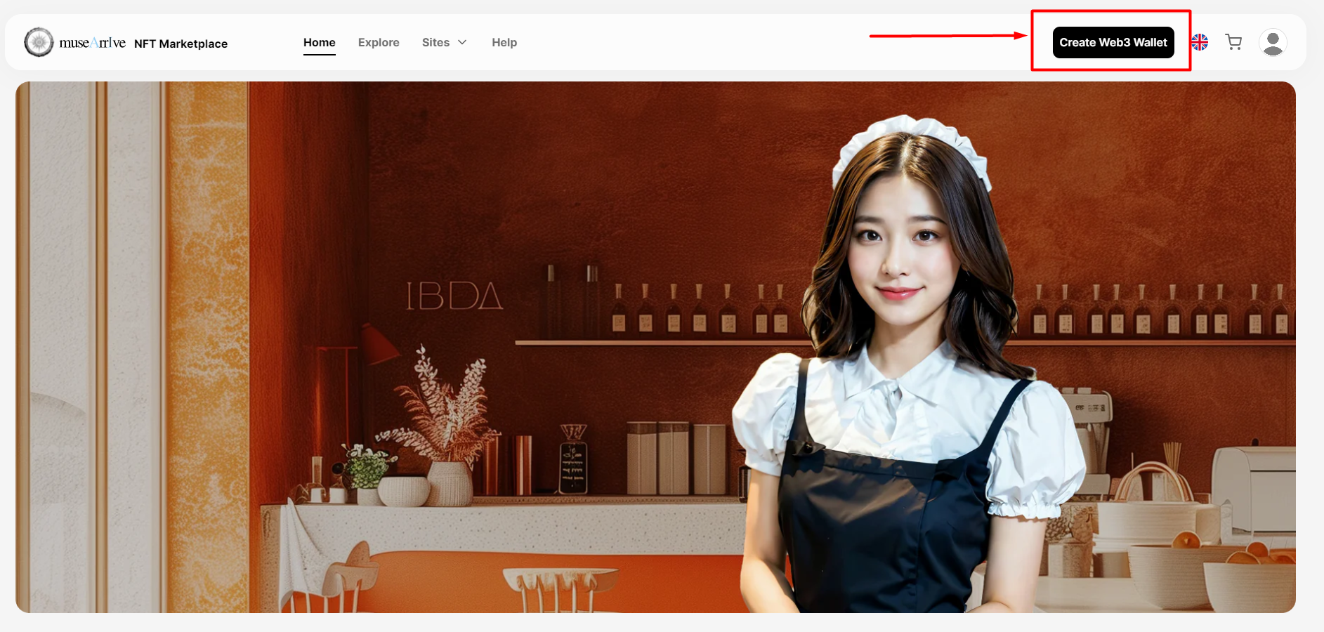 1. Access NFT Marketplace: https://marketplace.musearrive.ai/app/home