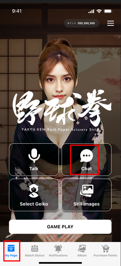 Step 2: On the My page screen, select Chat option
